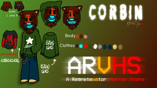 'ARVHS: A Regretevator Horror Story' is a psychological horror fan project based off of the ROBLOX game 'Regretevator', with a headcanon version of the story involving OCs. This is also a planned series.The first of the series, a short film, is about a cat named Connar in search of a missing person he had recently became friends with, after finding out they never went to the party they both had planned to go.As of currently, there are plans to create a sequel, but no further official details have come out.
